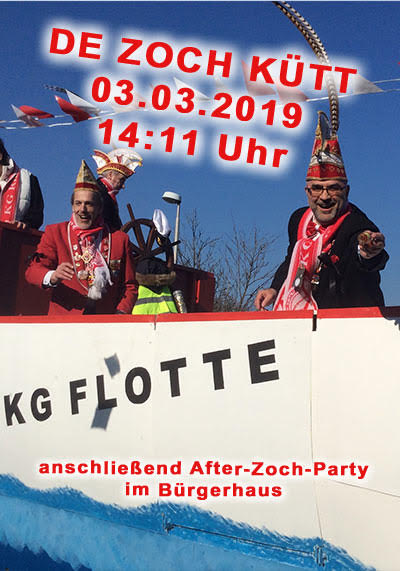 Nach dem Zug sind alle Jecken zur After-Zoch-Party im Bürgerhaus eingeladen!