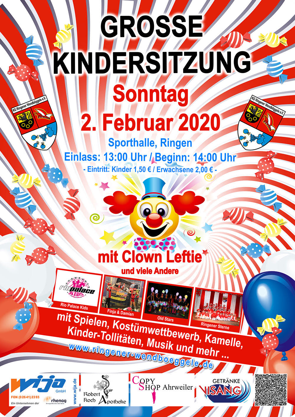 Wir laden alle Kinder und Jugendlichen mit Eltern, Großeltern und allen jung-gebliebenen Närrinnen und Narren zu unserer Großen Kindersitzung mit Spielen, Tänzen, Tollitäten, Kamelle und vielem mehr ein.