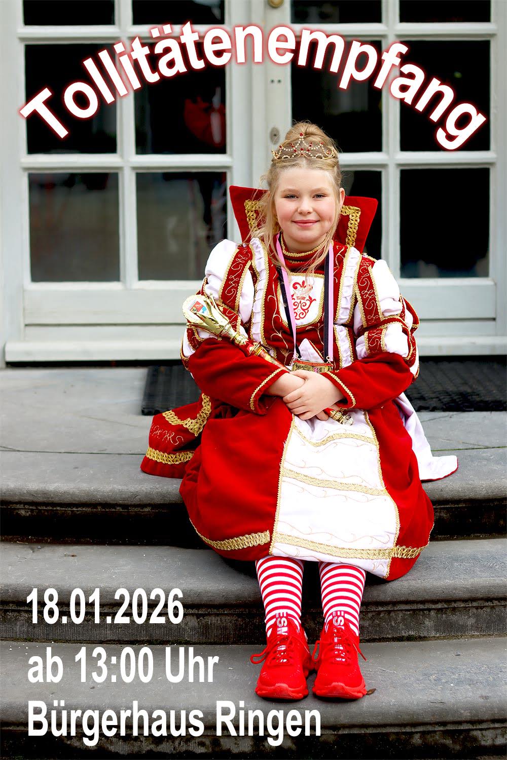 Große Ereignisse werfen ihre Schatten voraus. Bereits am Abend ihrer Proklamation als auch bei ihren ersten Terminen im November war klar: Mit Pia I. haben wir in Ringen eine für unser 40. Jubiläum absolut würdige regierende Prinzessin und sie ist noch laaaange nicht müde! Im Namen von Pia laden wir alle Jecken, ganz besonders alle Tollitäten von nah und fern, zu ihrem Tollitätenempfang ein.